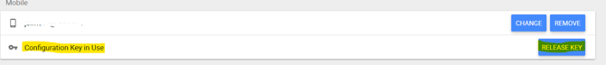 - Under the heading titled "Mobile" next to the key icon. If the configuration key is being used you will need to "Release Key" see below: